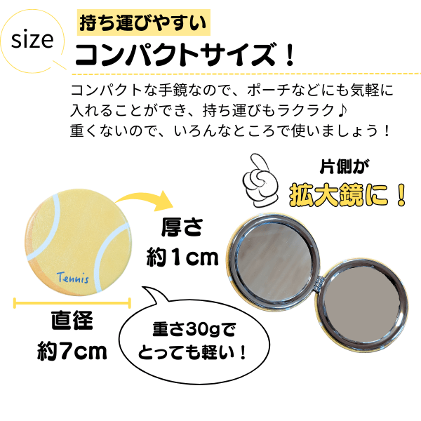 テニス 雑貨 グッズ スポーツ オリジナル ミラー 手鏡 可愛い プレゼント