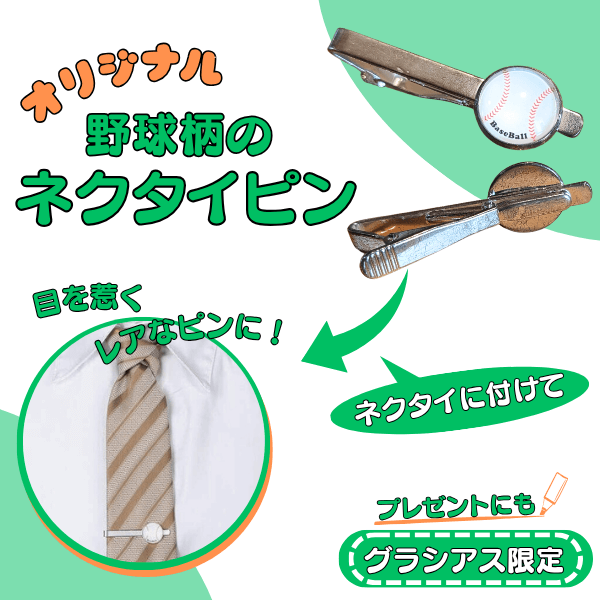 野球ボール付きのオリジナルネクタイピン 1個 (箱付き)