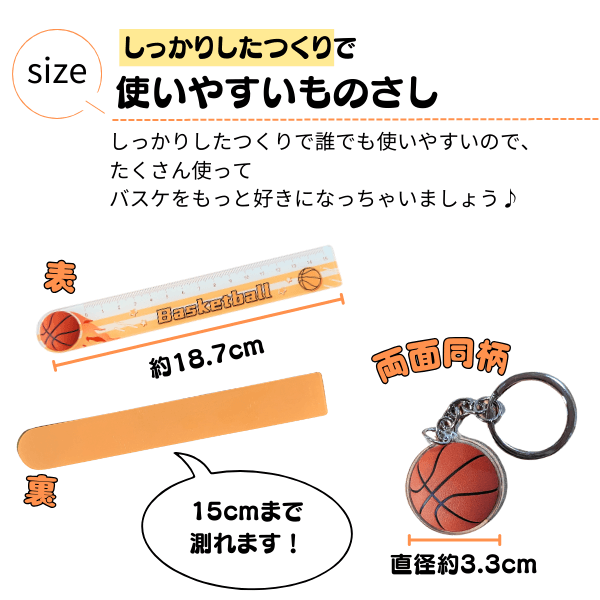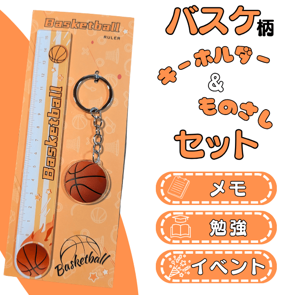 バスケ柄ものさしとキーホルダーのセット 1個