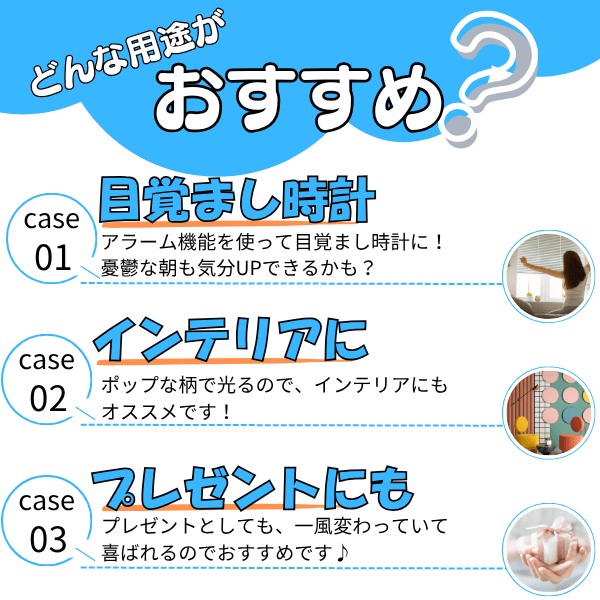 アラーム機能やスヌーズ機能も