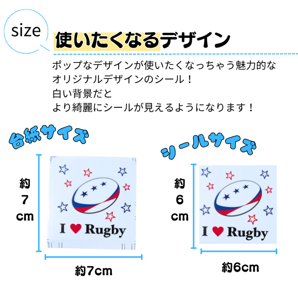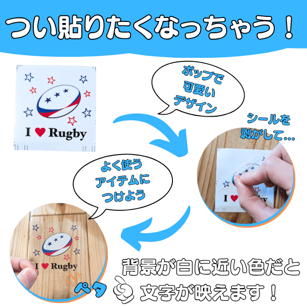 オリジナルラグビー柄のスケルトンシール 「I love Rugby」 1枚