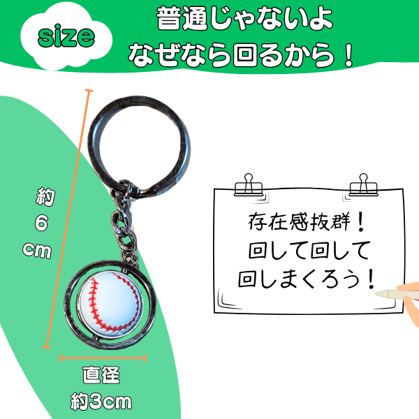 くるくる野球ボールのキーホルダー